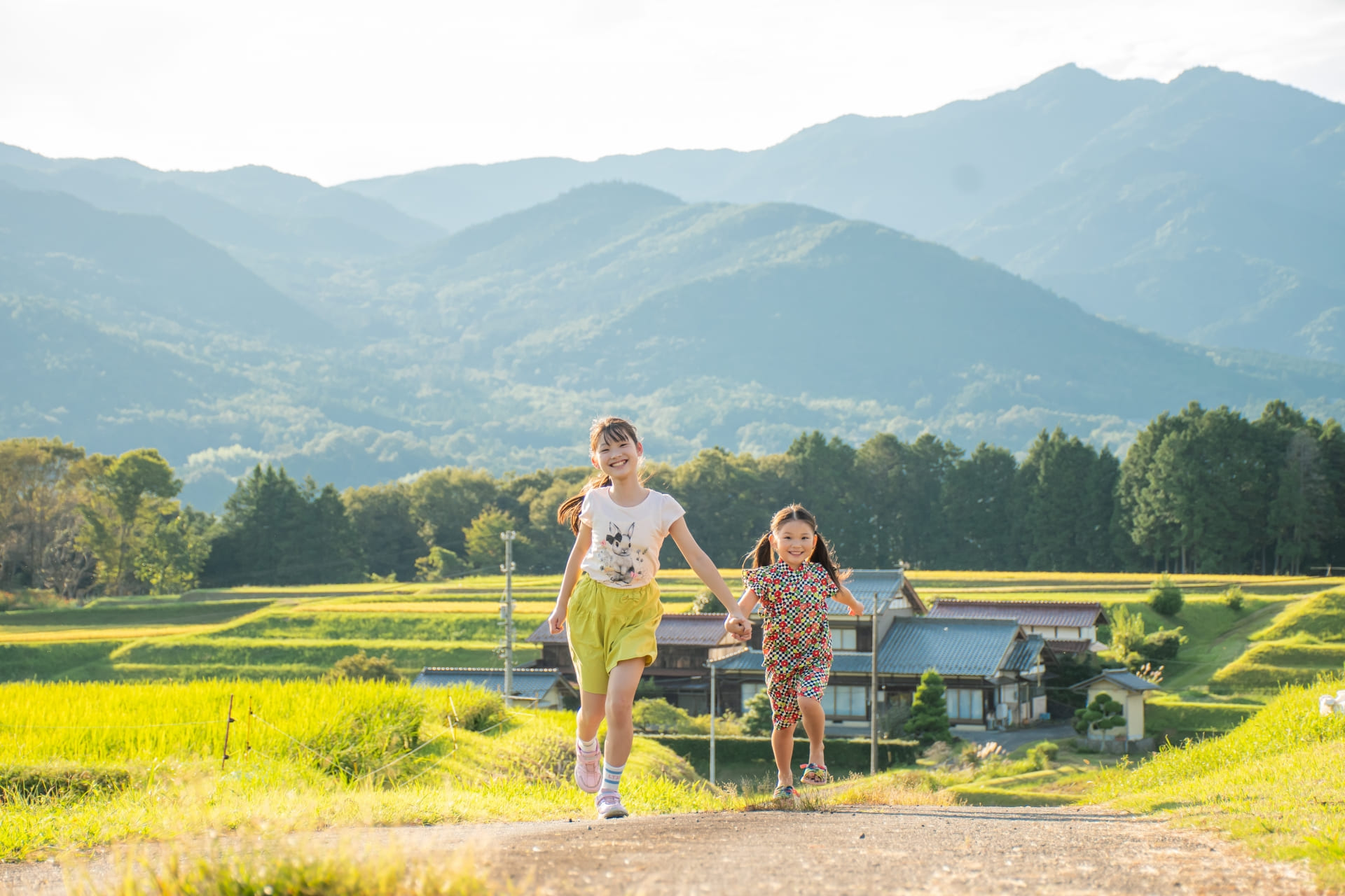 田畑や緑に囲まれたのびやかな場所で、子どもたちは季節の移ろいを感じながら、日々の生活を送っています。